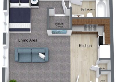 Ashbury Court features a wide range of layouts, from efficient studios to spacious three-bedroom apartments. Floor plans are designed to accommodate a variety of lifestyles, offering comfortable living spaces with practical features.