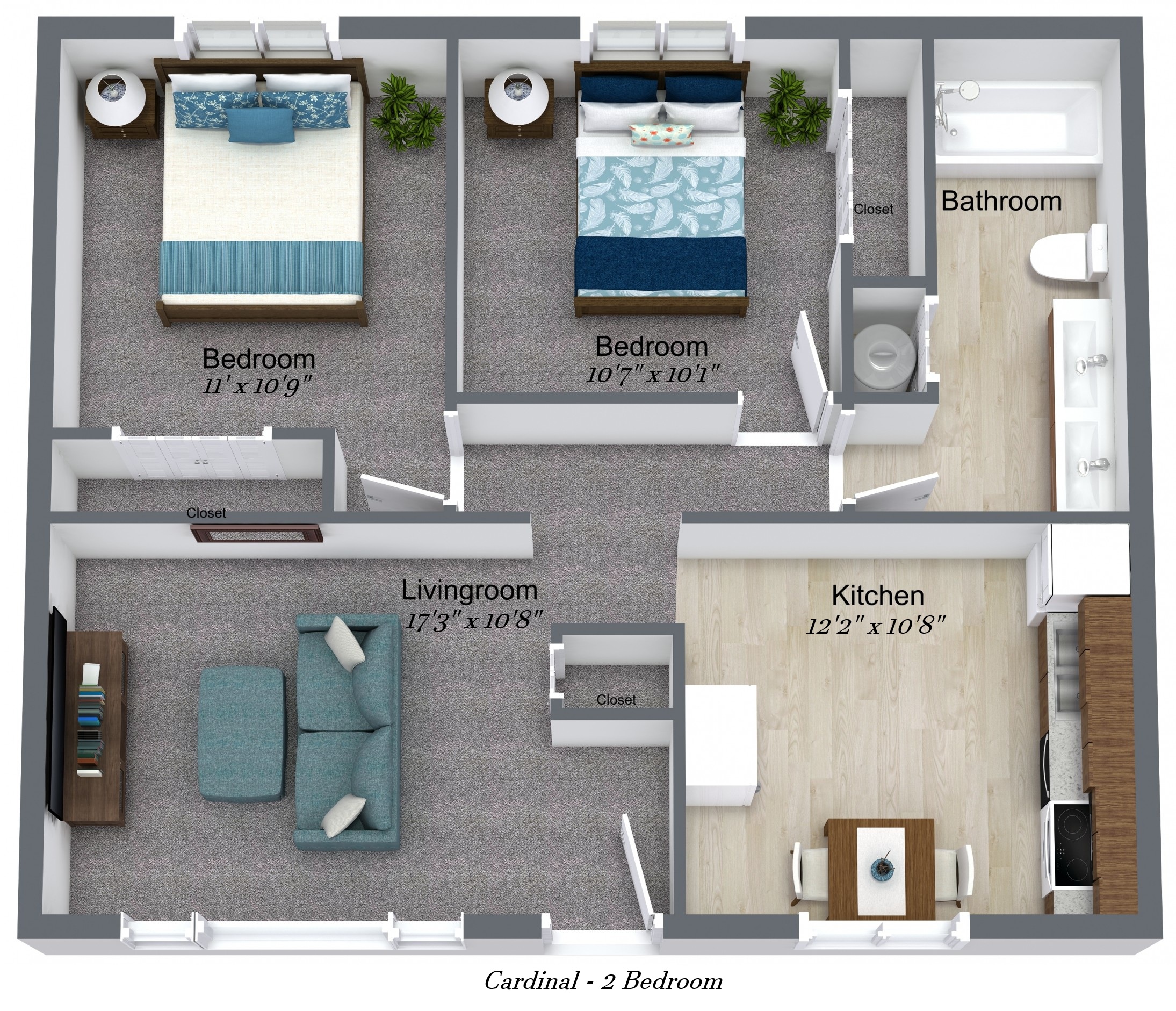 - Dishwasher, Washer/Dryer, & Microwave in Two Bedroom Apartments